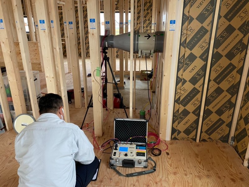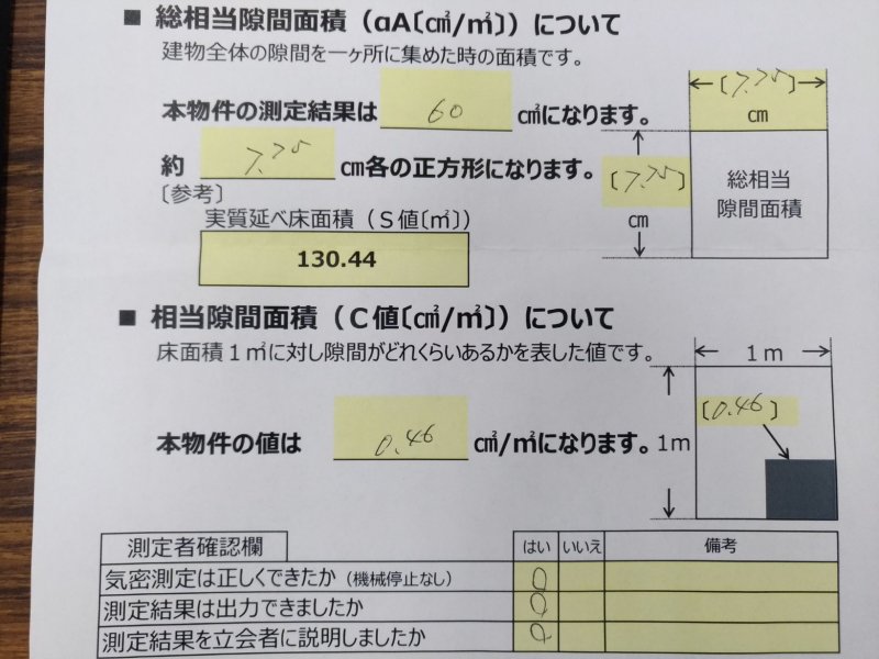 後日、気密測定をしたところ、C値は0.46という結果でした。