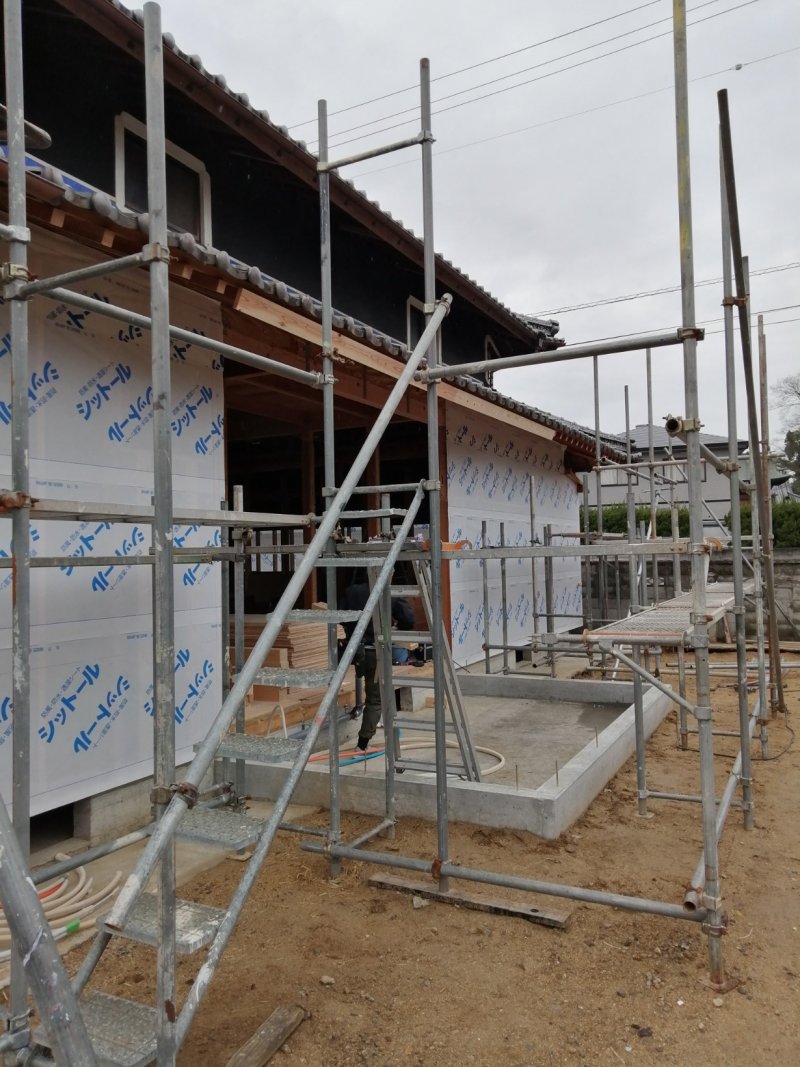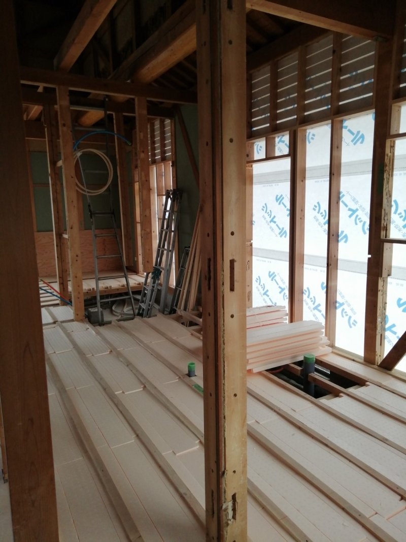 ここちリノベーション:2021年02月18日 KOKOCHI RENOVATION 坂出市T様邸リノベーション③ 工事始まりました まずは床から。 束石は既存のものをつかい、その上に床束→大引き→根太→床材の順に組み上げていきます。 根太と根太の間には断熱材を入れて、床下からの冷気をしっかり遮断します。 こちらは増築部分。 キッチンになります。 外壁のプリント鉄板も黒っぽい木目に張り替えました。 サッシもペアガラスに。 断熱性能にすぐれたサッシは、快適な室温、結露の減少、騒音カット、そして省エネルギーな暮らしを実現します。 ←←②へ戻る ④へ続く→→