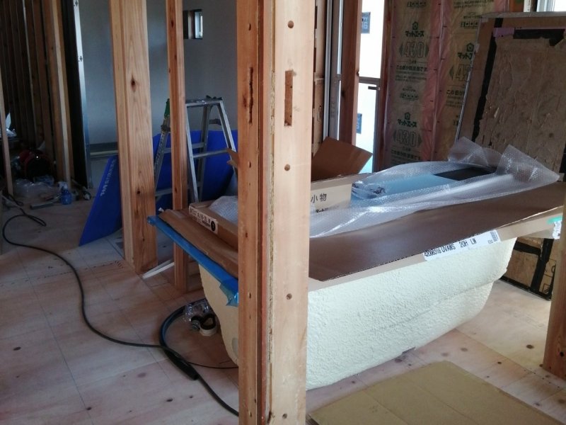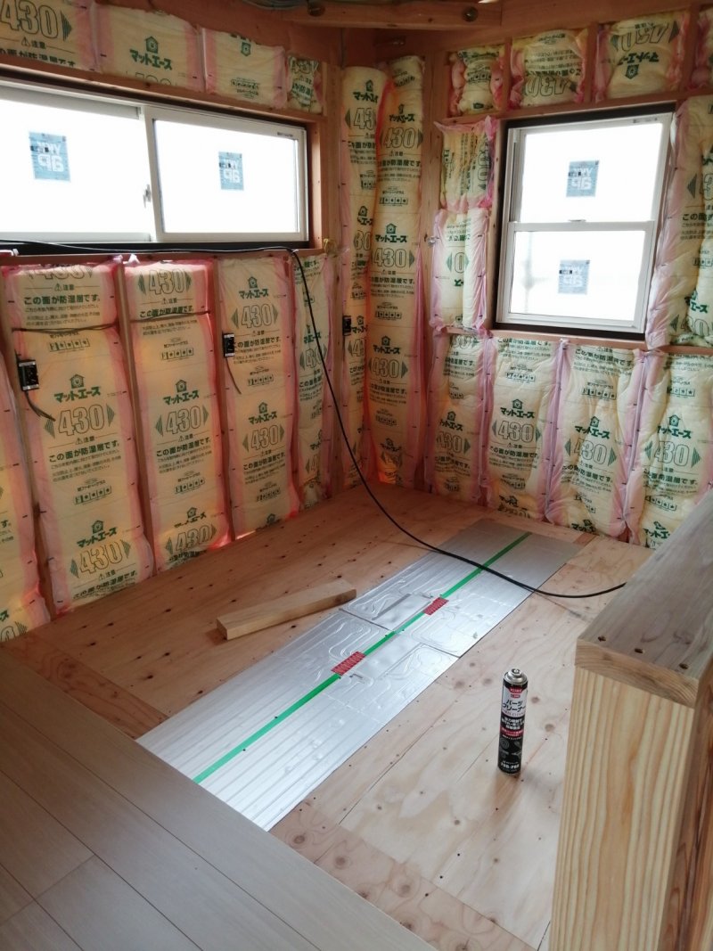 ここちリノベーション:2021年02月27日 KOKOCHI RENOVATION 坂出市T様邸リノベーション④ 工事進んでいます! 和室にあった欄間はLDKの壁面照明にリメイク。 飴色の欄間をインテリアのアクセントとして取り入れれば、温かい風合いがプラスされます。 こちらはトイレの隣の手洗いスペース。 和室の書院障子を出窓の内側に取り付けました。 手洗いカウンターは造作します。 吹き抜けで足元の冷えが気になるLDKにはガス温水式床暖房を採用しました。 銀色の部分が床暖房のパネルです。 このパネルの中をお湯が循環して床だけでなくお部屋全体を暖めます。 ←←③へ戻る ⑤へ続く→→