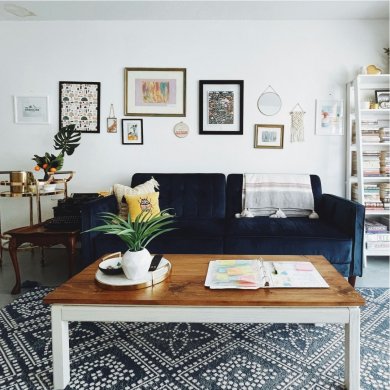 また、クッションの色、花瓶の色にも同じ青色が配色されています。