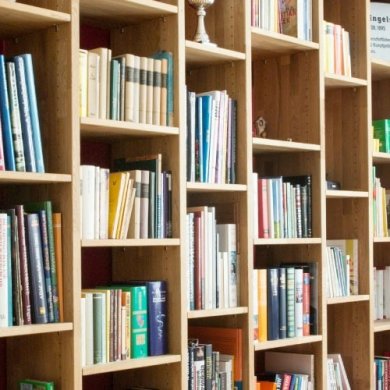 (画像をみてください。本棚の本は背表紙がすべてそろっています)