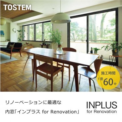 今ある窓の内側につけるインプラスなら1窓1時間程度でリフォーム完了です。