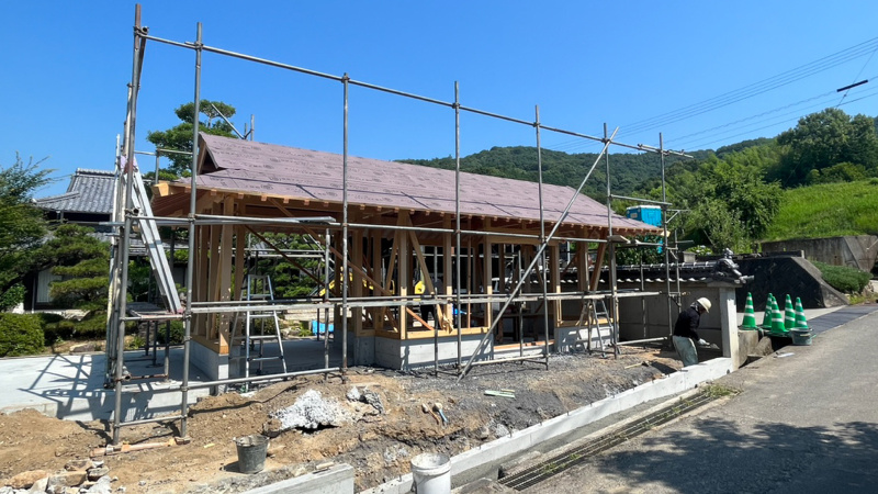 :2025年07月02日 丸亀市Y様邸 長屋門工事【屋根】 長屋門が着々と工事が進んでおります✨ 長屋門がある家が珍しくなった昨今、こんな工事ができること本当に嬉しいです さてさて、屋根が出来てきました~ プレハブ物置ではなく、長屋門。 趣があってかっこいいです