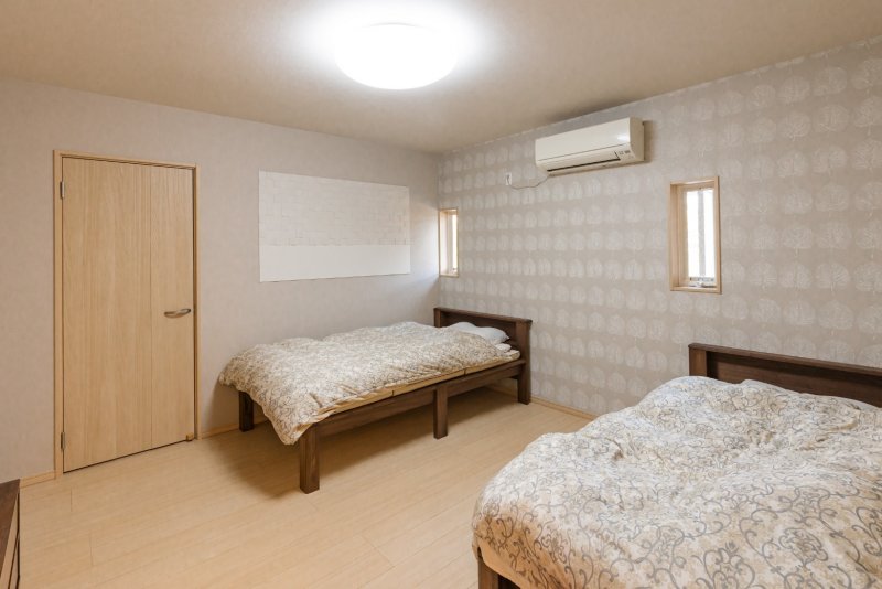 主寝室は窓を小さく、クロスも落ち着いた色にして眠りやすい部屋にしました。