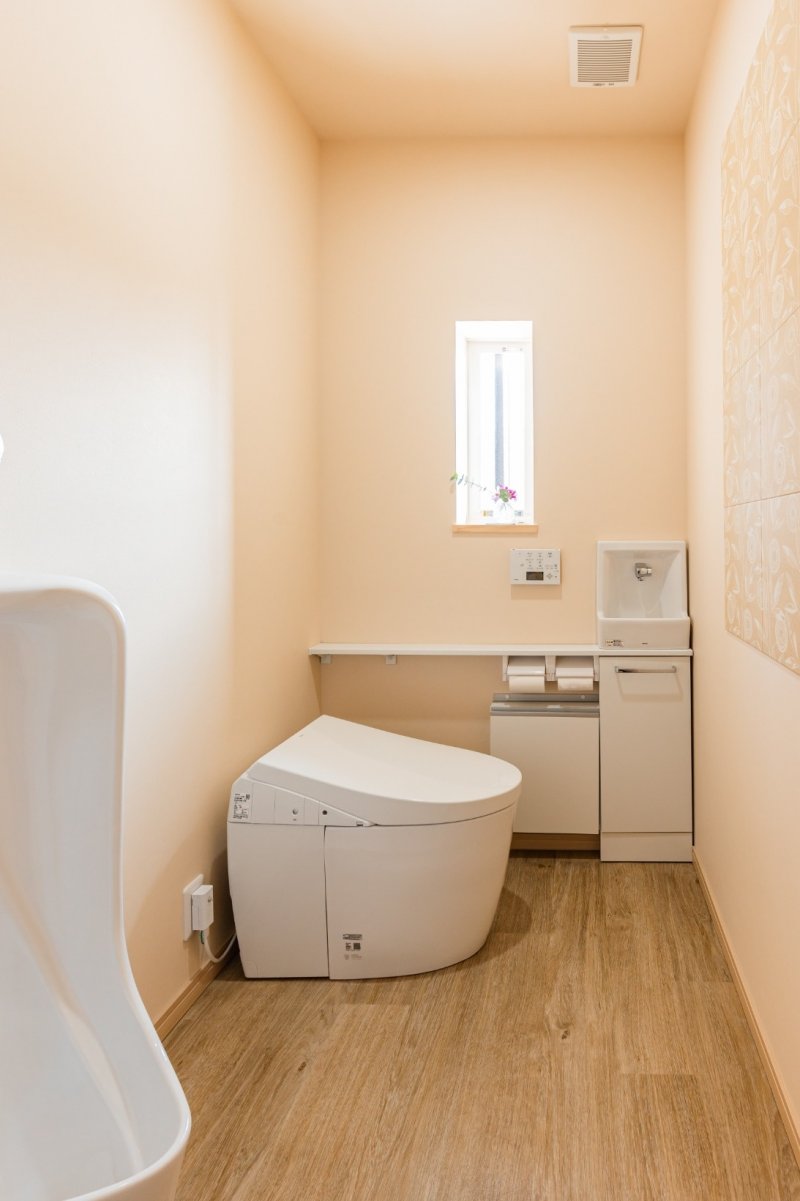 壁には消臭機能のあるエコカラットを貼りアクセントしました。