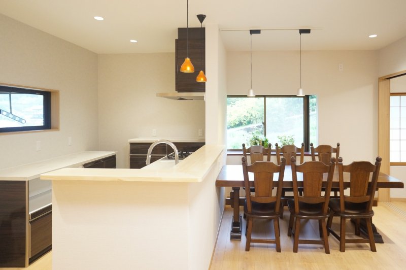 ダイニングキッチンも間取りを縮小し、余ったスペースを土間にしました。
