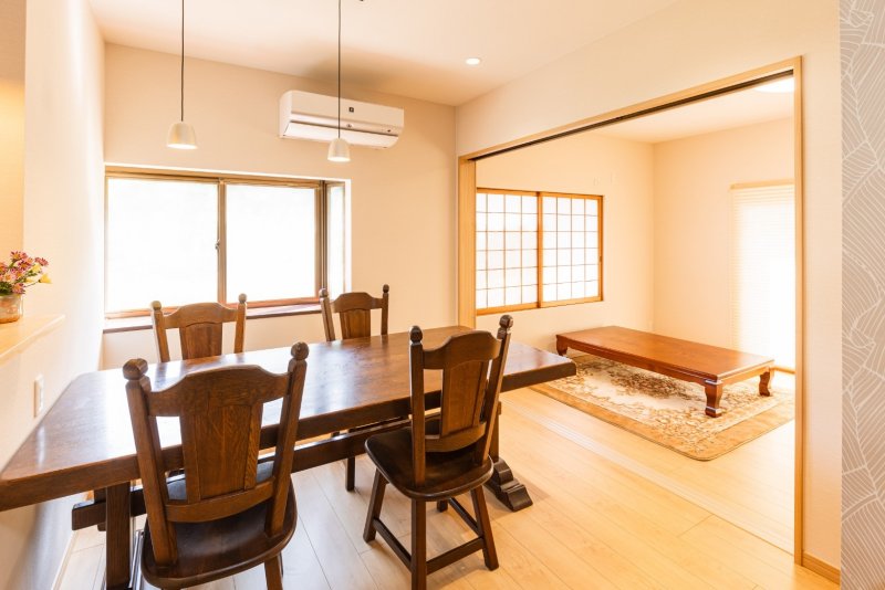 リビングは和室を洋室に変更し、間仕切りの3枚引戸を閉じれは空間を分けることもできます。