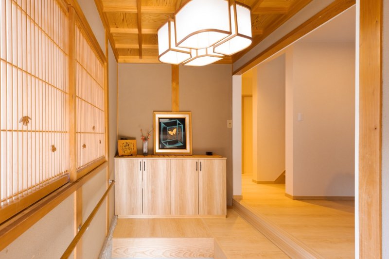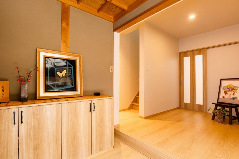 玄関は式台と下駄箱以外触りませんでしたが、L字になった式台が使い勝手をアップさせました。