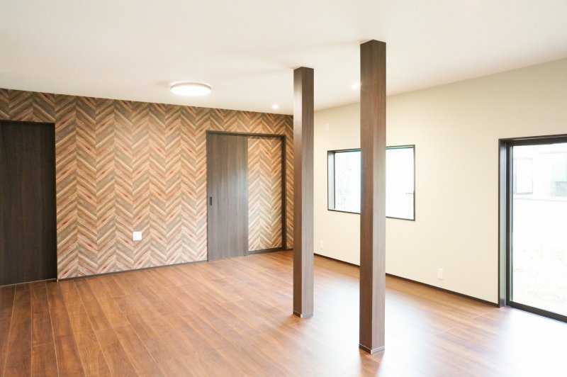 リビングは梁を支える柱が抜けませんでしたが、窓を4枚の引違戸から2枚の引違戸に、2枚の引違戸をFIX窓にすることで、すっきりとした視界になり、解放感がでました。