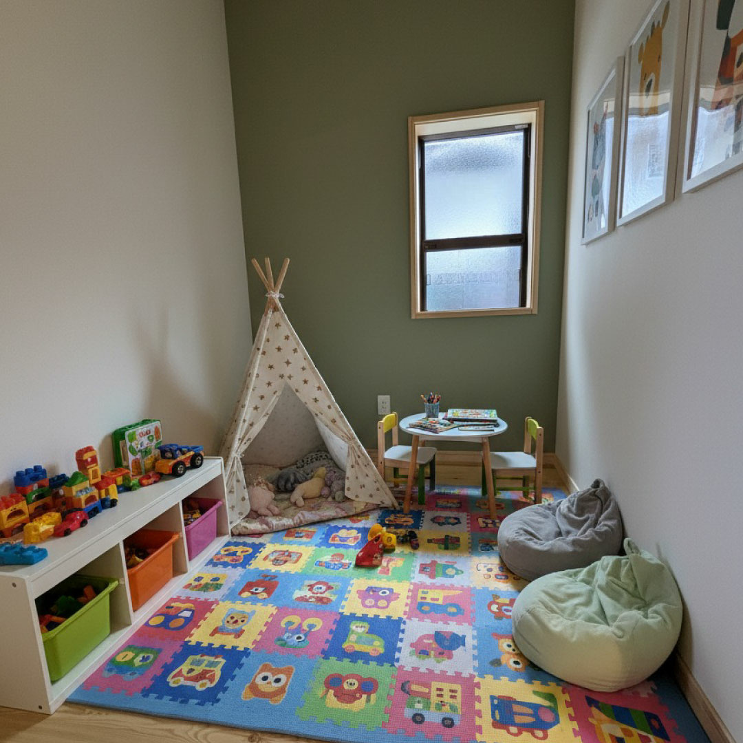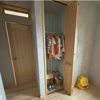 また、子どもたちが自由に遊べるスペースや、玄関横のクローク。