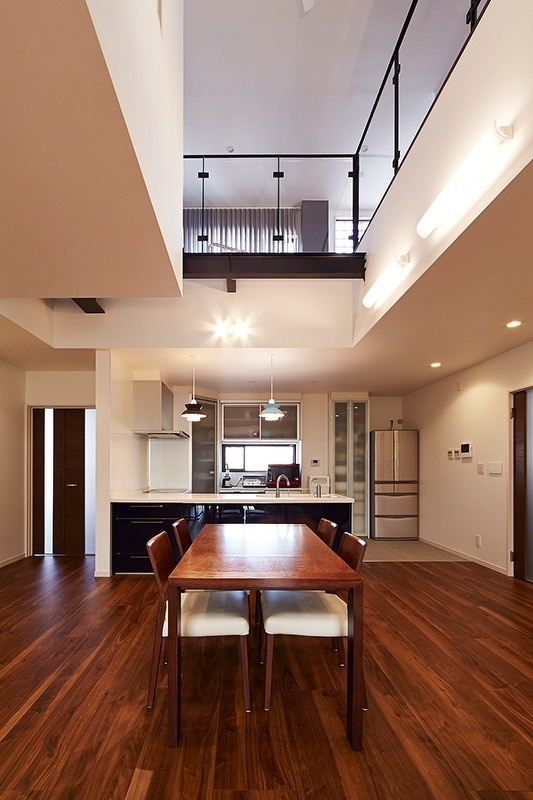 2階の床の一部を取り除き、吹き抜けにすることで窓からの明かりが1階にまで届くようにしました。