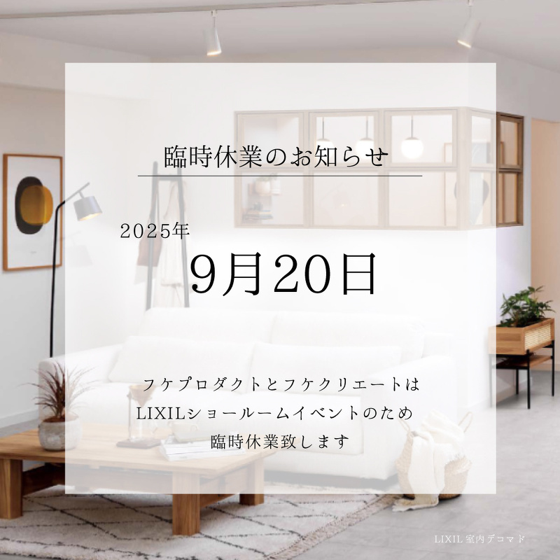 誠に勝手ながら、9月20日(土曜日)は、LIXILショールーム高松で開催されるショールームイベント参加のため、店舗を臨時休業とさせていただきます。