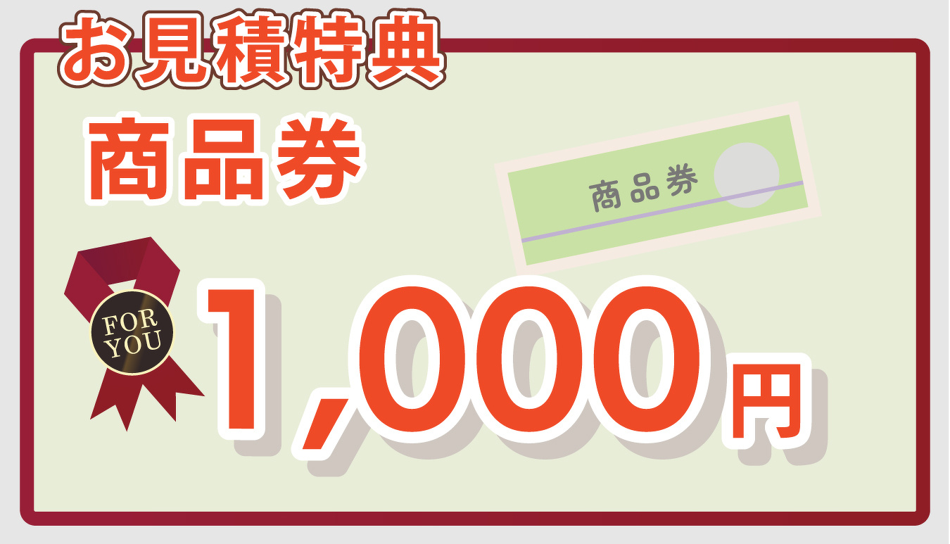 ご来場いただきお見積りを依頼いただいたお客様に商品券1000円分を進呈いたします。