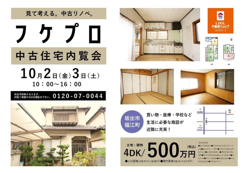 坂出市福江町で予約制中古住宅の内覧会を開催します。