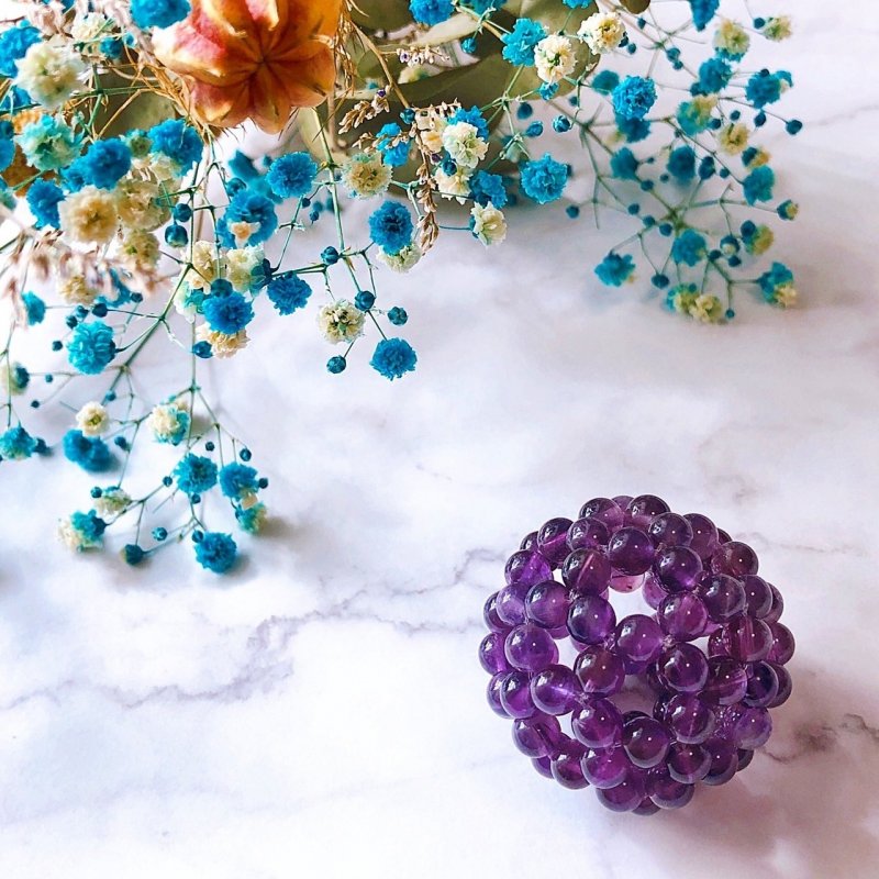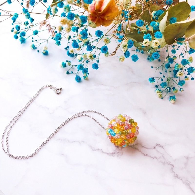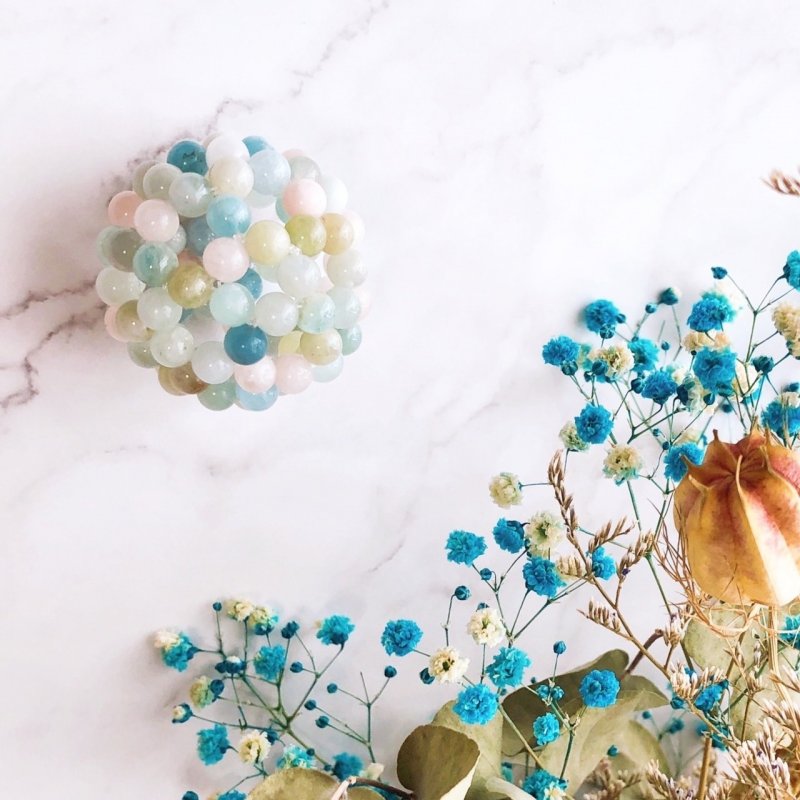 天然石を一粒ずつ合計90粒を紡ぐことにより