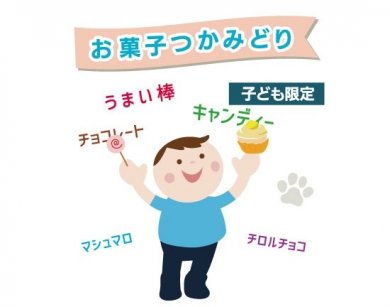 子ども限定!お菓子つかみ取りできます。子どもコーナーもありますので、お子様連れでも大丈夫!!