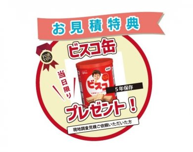 ★現地調査見積ご依頼いただいた方に、ビスコ缶(5年保存)プレゼント!