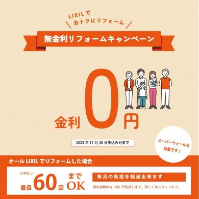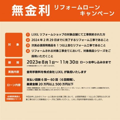 「無金利リフォームローンキャンペーン」のお知らせです。